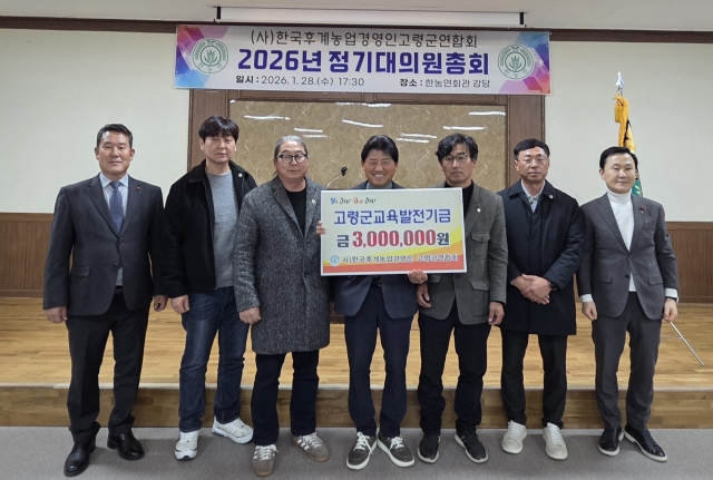 경상포커스=전상철기자)한국후계농업경영인 고령군연합회(회장 이덕봉)28 고령군후계농업경영인회관에서 개최된 ‘2026년 한국후계농업경영인 고령군연합회 연시총회에서 지역의 교육 발전과 인재 양성을 위해 사용해 달라며 교육발전기금 300만원을 기탁하였다.